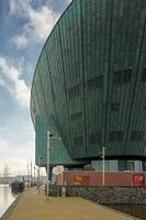 Het NEMO Science Museum is een wetenschap- en technologiemuseum in Amsterdam. Dit beeld toont de zijde waaraan ook het haven museum is gevestigd. Dit werk is ook in zwart-wit verkrijgbaar.