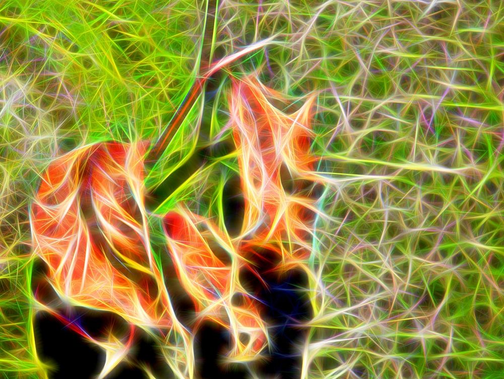 dode bladeren op een boomstam in neon-look