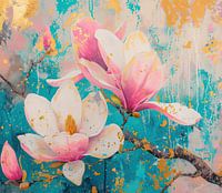 Neon Bloemenpracht | Electric Blossom Veins - kleurrijk abstract bloemenschilderij met neonaccenten