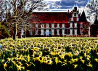 Narcisbloesem voor kasteel Herten in neon-look
