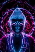 Dit indrukwekkende ontwerp toont een Boeddha-figuur in schitterende neonkleuren. De levendige blauwe, paarse en roze tinten creëren een hypnotiserend visueel effect dat perfect past in moderne interieurs. De Boeddha is omgeven door een stralende halo, wat het geheel een spirituele en serene uitstraling geeft. Dit kunstwerk is ideaal voor een kantoorruimte of slaapkamer, waar het als een rustgevend en inspirerend middelpunt kan dienen. De unieke combinatie van klassieke symboliek en moderne neonkunst maakt dit ontwerp tot een echte blikvanger die de aandacht trekt en tot de verbeelding spreekt.