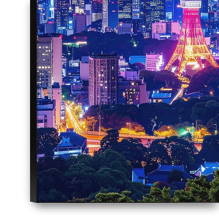 Koop de illustratie Neon Eiffeltoren Stadsgezicht van rendy okta als print op canvas, aluminium dibond, (ingelijste) fotoprint, behang en ArtFrame. Voor jou op maat geprint in Fine-Art kwaliteit.