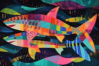 Neon Haai Kunst - kleurrijk abstract neon haaien