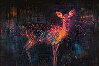 Neon Hert Kunst | Starlit Echoes Deer - Abstract neon hert schilderij