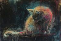 Details: kat, neon, abstract, dier, nacht, kunst, schilderij, zwart, rood, blauw