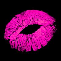 Pop art afdruk van een zoen met verschillende kleuren lippenstift.