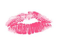 Pop art afdruk van een zoen met verschillende kleuren lippenstift.