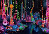 Neon Natuur Abstract | Pixel Rainforest - abstract neon boslandschap