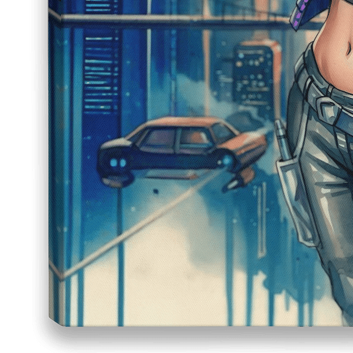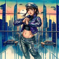 Stap in de levendige, met neon doordrenkte toekomst met "Neon Skyline Sentinel," een verbluffend digitaal kunstwerk dat de essentie van cyberpunk elegantie vastlegt. Op dit kunstwerk staat een zelfverzekerde, futuristische heldin tegen een adembenemend stadslandschap waar vliegende auto's onder een schemerige hemel tussen…