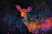 Hert Neon Hert | Neon Whisper Fawn - abstract neon hert schilderij