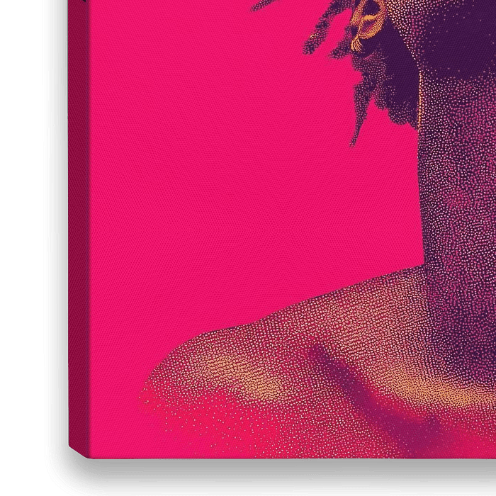 Neon Gaze is een gedurfd en expressief digitaal kunstwerk dat de esthetiek van vintage rastertechnieken combineert met de kracht van moderne pop-art. De afbeelding toont een zelfverzekerde vrouw in een dynamisch perspectief, met haar gezicht omhoog gericht, gevangen in een moment van pure uitstraling. De puntige rasterstructuur,…