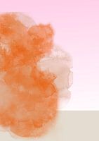 Neon oranje tegen een zacht roze achtergrond met kleurverloop. Daarachter een zandkleurige tweede achtergrond. Fris, verrassend en modern.