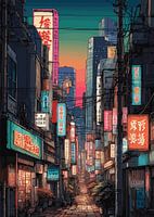 Osaka Japan, met Neon Stijl. Stadsgezicht, Japan Poster