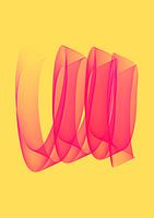 Werk met de titel "Neon statement". Rode vorm tegen een felgele achtergrond. Contemporary art.