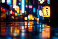 Een fascinerend samenspel van kleuren en licht ontvouwt zich in een stedelijk perspectief met diepte. Neonlichten worden gereflecteerd op natte straten, terwijl een gloeiende lantaarn de scène zachtjes verlicht. Dit beeld, dat levendige herinneringen oproept aan avondwandelingen door de stad, is perfect voor een moderne woonkamer om een…
