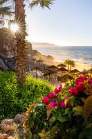 Strand met palmbomen bij de stad Nerja aan de Costa del Sol in Andalusië in Spanje .
