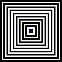 Centraal geplaatste vierkante stroken, aantal nesten N=10, middenblauw