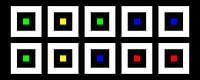 Centraal geplaatste vierkante stroken, matrix 05x02, aantal nesten N=2, willekeurig #20, middens rood, groen, blauw, geel