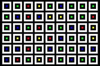 Centraal geplaatste vierkante stroken, matrix 09x06, aantal nesten N=2, willekeurig #03, middens rood, groen, blauw, geel