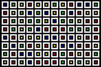 Centraal geplaatste vierkante stroken, matrix 12x08, aantal nesten N=2, willekeurig #02, middens rood, groen, blauw, geel