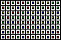 Centraal geplaatste vierkante stroken, matrix 12x08, aantal nesten N=2, willekeurig #05, middens rood, groen, blauw, geel