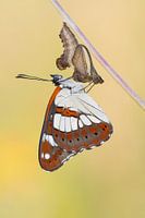 Net uitgeslopen Blauwe ijsvogelvlinder (Limenitis reducta) rust uit op chrysalis, Duitsland. © Arik Siegel / Nature in Stock