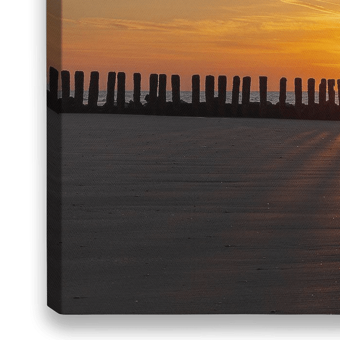 Deze golfbrekers stonden mooi in contrast tussen de lens en de ondergaande zon. Hiermee kwam een prachtig schaduwspel tot stand die meters ver reikten. Ook de kleuren van de zonsondergang waren heerlijk om te aanschouwen.