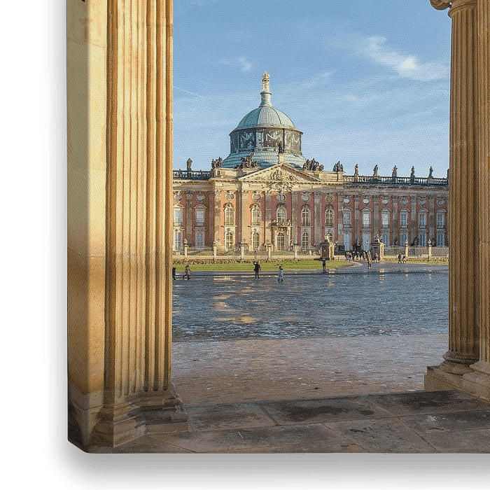 Verticale panoramafoto van het Neues Palais in Potsdam, bezien vanaf de Communs.