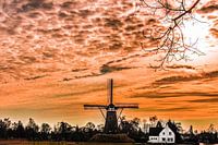 Mooie oranje kleuren in de lucht aan het einde van de dag met een mooie windmolen in het beeld.