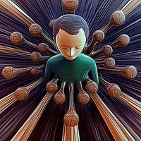 "Neuronal Blossom" vangt het moment waarop gedachte en transformatie elkaar ontmoeten - een abstracte belichaming van bewustzijn die de menselijke vorm overstijgt. Deze glanzende digitale sculptuur visualiseert de complexiteit van cognitie, waar emotie, geheugen en identiteit uitstralen als ranken van oneindige…