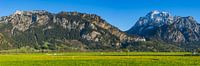 Neuschwanstein, daarachter het bergmassief Tegelberg, 1881m, en de Säuling, 2047m, Schwangau, Ostallgäu, Allgäu, Zwaben, Beieren, Duitsland, Europa