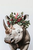Koop de foto Neushoorn Kerstmis van Poster Art Shop als print op canvas, aluminium dibond, (ingelijste) fotoprint, behang en ArtFrame. Voor jou op maat geprint in Fine-Art kwaliteit.