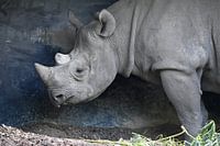 Dromerige neushoorn in mooie kleurcombinatie van grijs/blauw.