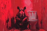 Neushoorn in Rood Verlichte Badkamer met Intense Street-Art Uitstraling van Eva Lee