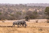 Neushoorn ouder & jong. Gefotografeerd in het Krugerpark in Zuid Afrika