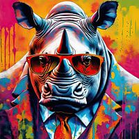 Neushoorn - een Pop Art Schilderij als echte Blikvanger... Uit onze collectie 'Sharply Dressed Animals'. Dit schilderij krijgt gegarandeerd aandacht...