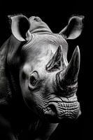 De majestueuze neushoorn ontmoet ons met een imposante gratie, zijn krachtige aanwezigheid en opvallende hoornstructuur betoveren ons. De contrastrijke zwart-witafbeelding versterkt de diepte en textuur, perfect als opvallend accent in de woonkamer, waar het een gesprek kan stimuleren en verwondering kan opwekken.