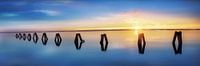 Uitzicht over het sfeervolle Neusiedlermeer bij zonsondergang.