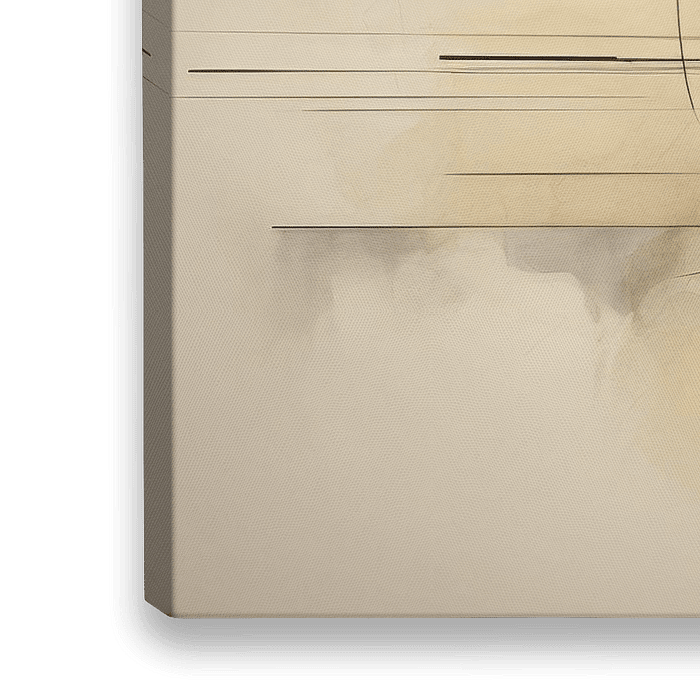 Een spel van lijnen en cirkels komt tot leven in zachte zand- en beigetinten. De lichte achtergrond en subtiele kleuraccenten creëren rust en balans, ideaal voor een stijlvol en tijdloos interieur.