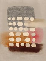 Een stijlvolle abstracte compositie waarin zachte vormen en warme tinten elkaar subtiel overlappen. De combinatie van aardse beige- en bruintonen met een vleugje roze en zachte textuur creëert een modern en uitnodigend geheel. Organische stippen en transparante lagen zorgen voor diepte en rust, waardoor dit kunstwerk zowel speels als…