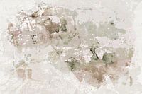 Een abstract schilderij van organische geometrische vormen met een licht expressionistische textuur in wit, ivoor, grijs, warm blauwgrijs, indigo, koper, goud en beige kleuren met een impressie van Scandinavische kunst uit Noord-Europa.