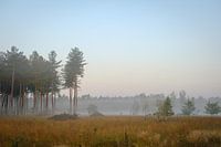 Nevel aan de rand van het bos tijdens de ochtend aan het Pietersheimbos in Lanaken (België).