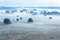 Hoe mooi is het om de lagen te zien van de bomen in het landschap steeds verder naar achter toe en boven de mist uitsteken.