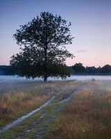 Koop dit landschapskunstwerk Nevelig Landschap bij Zonsopkomst: Een Eenzame Boom aan een Zandpad van Hevonax Photography als print op canvas, aluminium dibond, (ingelijste) fotoprint, behang en ArtFrame. Voor jou op maat geprint in Fine-Art kwaliteit.