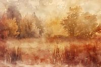 Nevelig sepia boslandschap in herfstsfeer van Art & Soul Creations