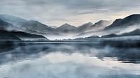 Koop dit digital art kunstwerk Nevelige bergen bij een rustig meer van Frank Heinz als reproductie op canvas, aluminium dibond, (ingelijste) fotoprint, behang en ArtFrame, op maat geprint in Fine-Art kwaliteit.