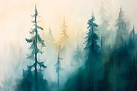 Zachte nevelflarden omringen majestueuze dennenbomen, terwijl delicate lichtstralen door het groen flitsen en een vredige sfeer creëren. De rustgevende kleurenharmonie van blauwe en groene tinten nodigt uit tot dromen en maakt dit kunstwerk de perfecte blikvanger voor de slaapkamer of een rustig leeshoekje in de woonkamer.