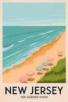 Golven die zachtjes over het gouden zand strelen en kleurrijke parasols die doen denken aan het ontspannen leven op het strand - dit nostalgische uitzicht op New Jersey belooft een vakantiesfeer. Perfect voor een woonkamer of hal om elke dag te genieten van het gevoel van vrijheid en zomerse frisheid.