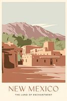 Zachte aardetinten omarmen de majestueuze bergen en traditionele adobe-gebouwen, terwijl de lucht glinstert in zachte pastelkleuren. Deze harmonieuze compositie straalt rust en een zekere mystiek uit, perfect voor de woonkamer, waar het een ontspannen toevluchtsoord creëert en gasten meeneemt naar het fascinerende landschap van New Mexico.