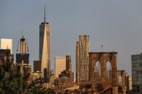 Die Brooklyn Bridge und Süd Manhattan im Morgenlicht